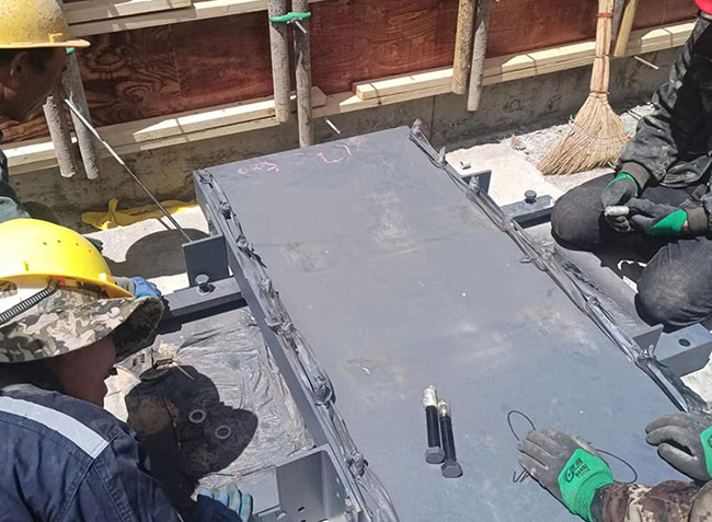 1、抗震鋼支座裝置高度有必要符合規(guī)劃要求,要保證支座支承平面的水平及平整,支座支承面四角高差不能夠大于2mm.2、上、下銜接板在梁體裝置完成后要進(jìn)行拆除,以避免約束梁體的正常轉(zhuǎn)動,然后及時裝置活動支座的橡膠防塵置。3、采用球形鋼支座時,橋梁梁體及橋墩臺支承部位的混凝土標(biāo)號不能低于C35,如果有特殊情況有必要征求規(guī)劃單位同意。4、抗拉球形鋼支座裝置時抗震鋼支座的相對滑動面要用、酒精細(xì)心擦凈,不能夠夾 -